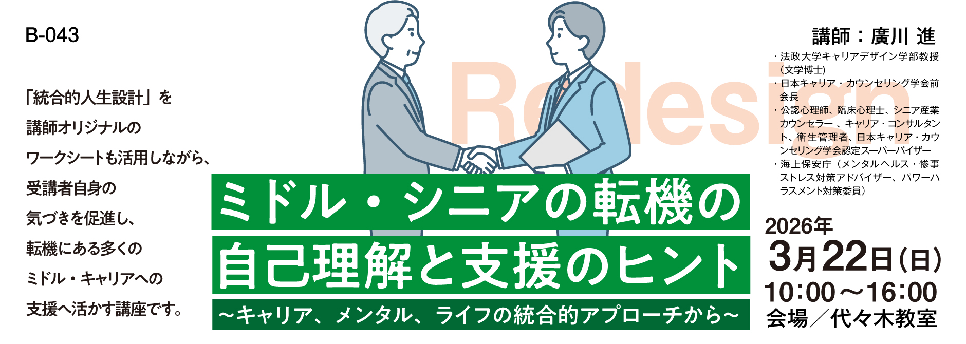 U-8L1 国CC更新講習(技能講習)「キャリアデザイン...